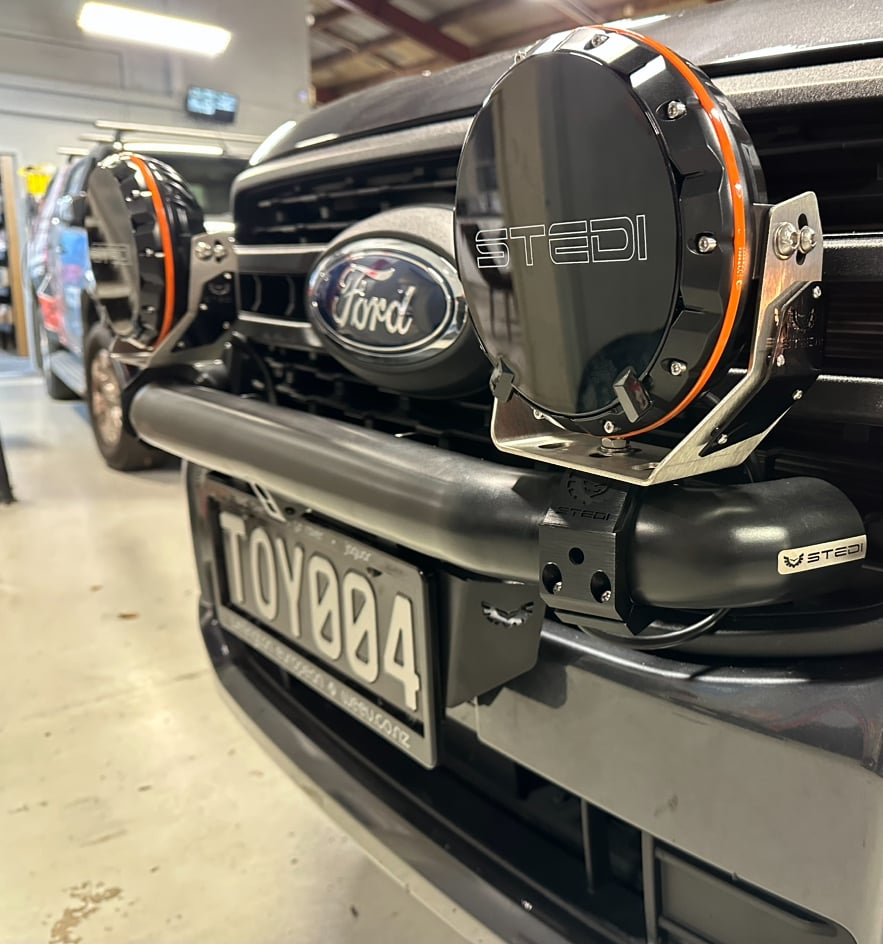 If you go and stalk us on Facebook you will find a timelapse video of the Stedi Rally Bar install. We’ve gone with a smaller set of lights on this ute, (My taste),however the rally bar and Stedi bracketry offer many variations with the spot lights and or light bars. The kits are very comprehensive and even get you started in some cases with a pre-done wiring loom that can be adapted to most applications. You might notice in one of the pics we swapped out one of the reverse lights that we installed sometime ago with a Stedi version. (At the time we only had access to one, but its been good to see a comparison. next time you see it, it will have 2).