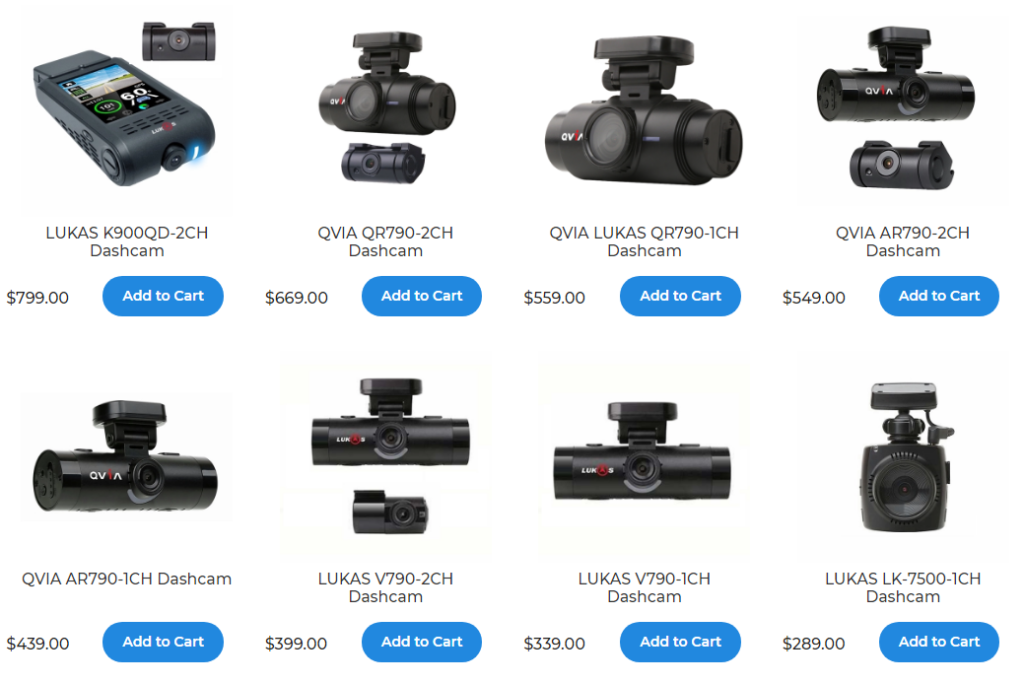 We run in one of our shop vehicles the QVIA AR790-2CH, a great unit with front and rear view camera’s. Link to smart phone via an app, with great HD video.